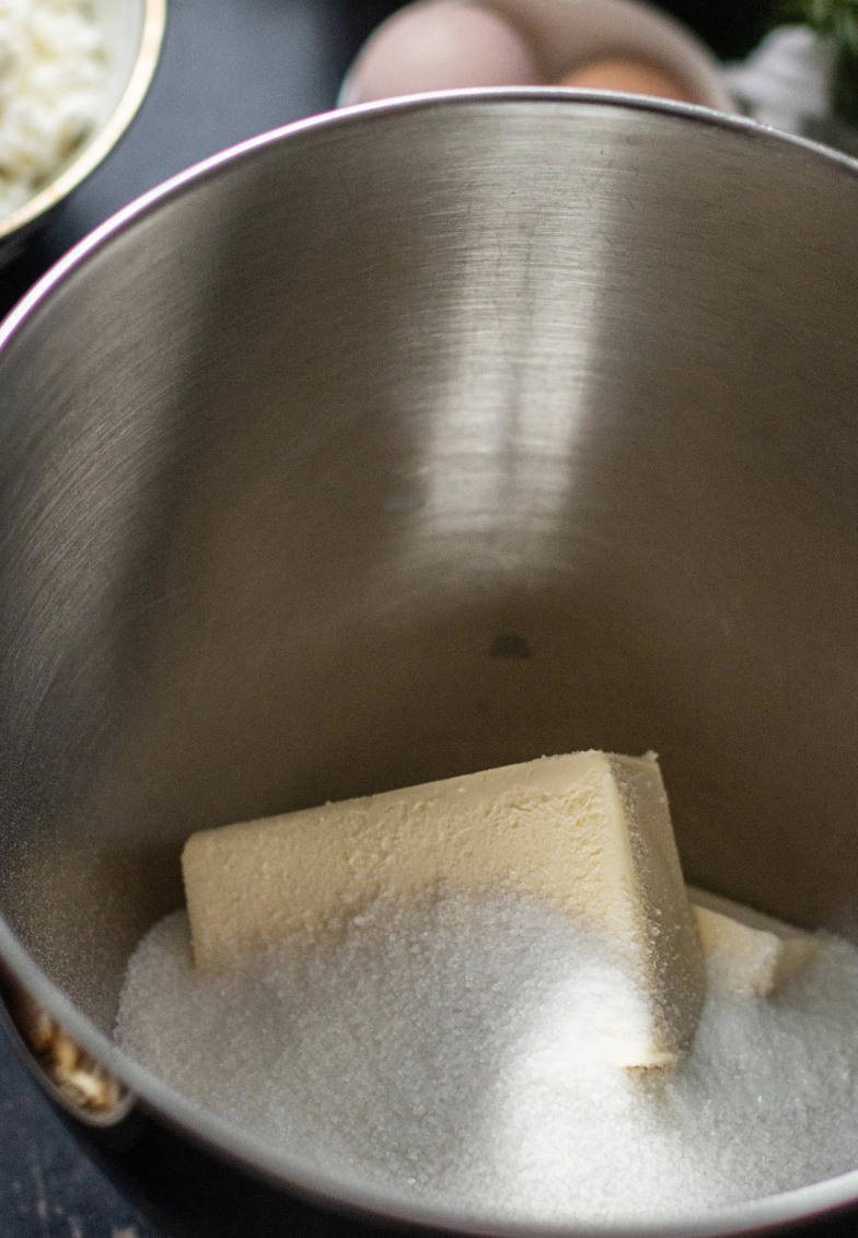 - Сливочное масло взбить с сахаром, добавить яйца, творог, сок и цедру апельсина — хорошо перемешать.
